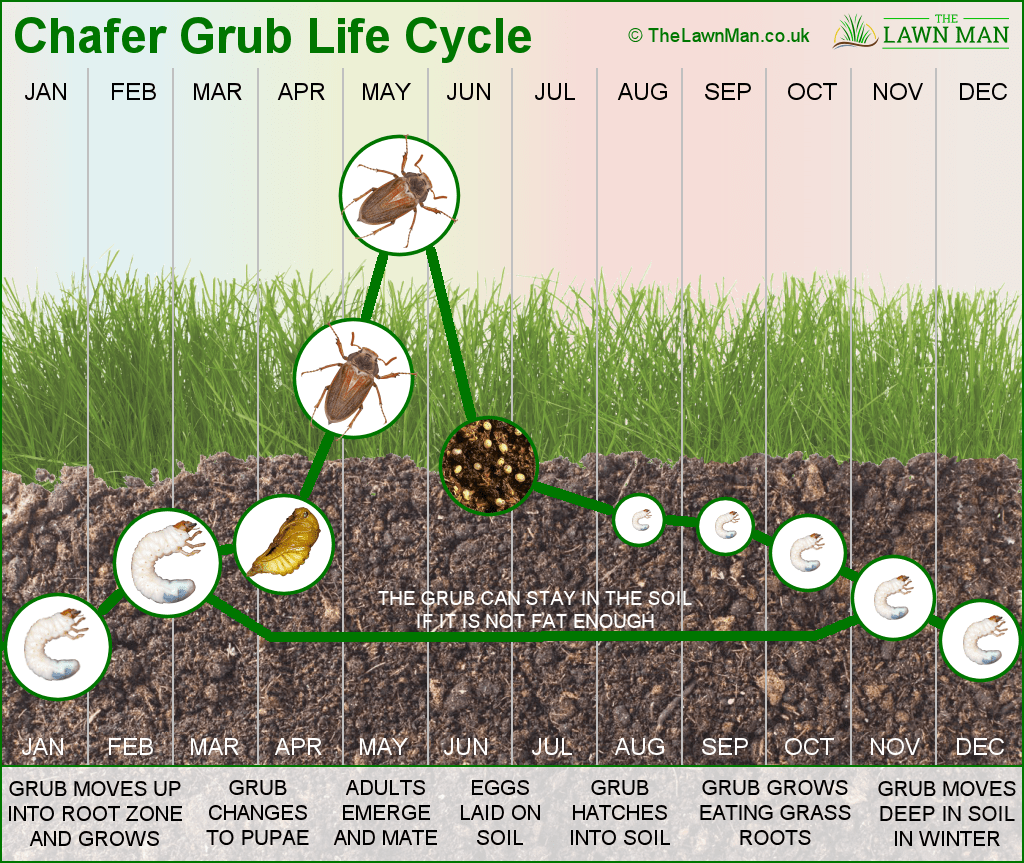 - Winter Hibernate (Winter): As the cold sets in, the grubs burrow deeper into the soil, preparing for their next assault.